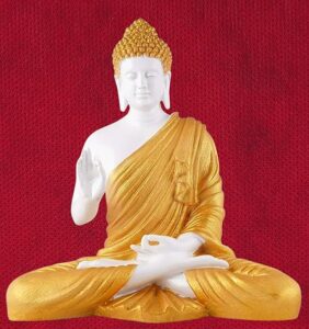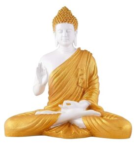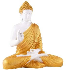 Home Uncategorized Resin Meditating Sitting Buddha/Buddh/Gautam Buddha Statue/Lord Buddha Showpiece Idol/Figurine/Murti for Living Room, Gifting, Home & Office Decor (15 inches/38 cm) (White Golden)